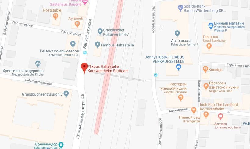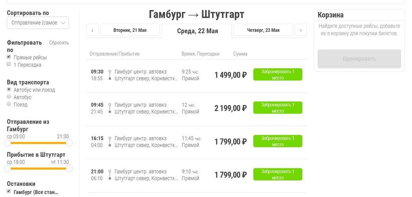 На этом скриншоте с сайта Flixbus видны прямые рейсы, которые идут в Штутгарт, а не в аэропорт или пригород.