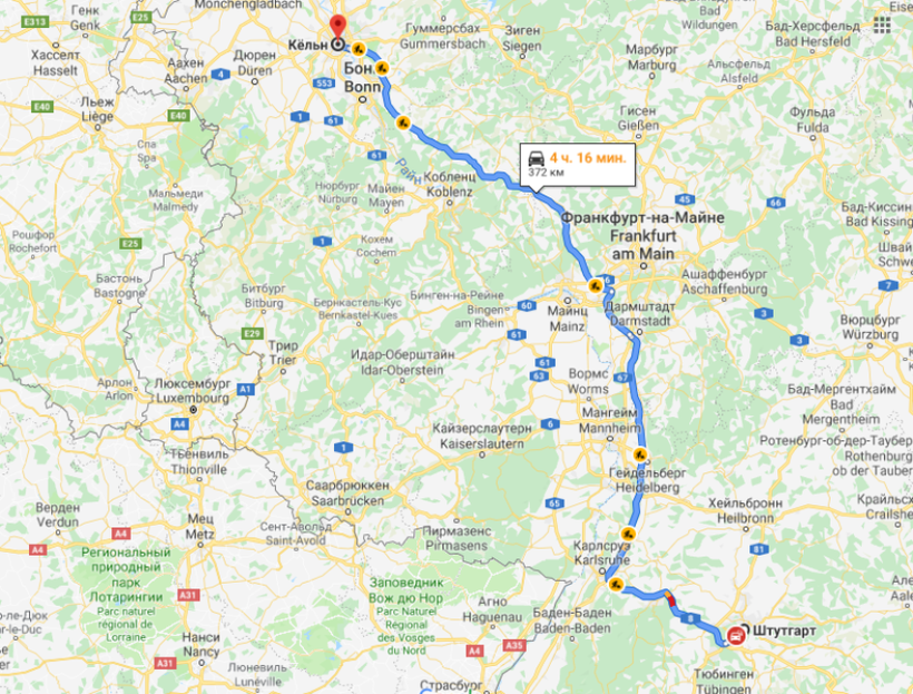 Путь из Штутгарта в Кёльн лучше проехать следующим образом:
