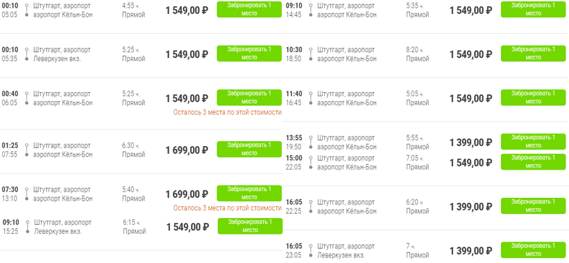 Билет на автобус из Штутгарта в Кёльн стоит 1400 рублей (19 евро).