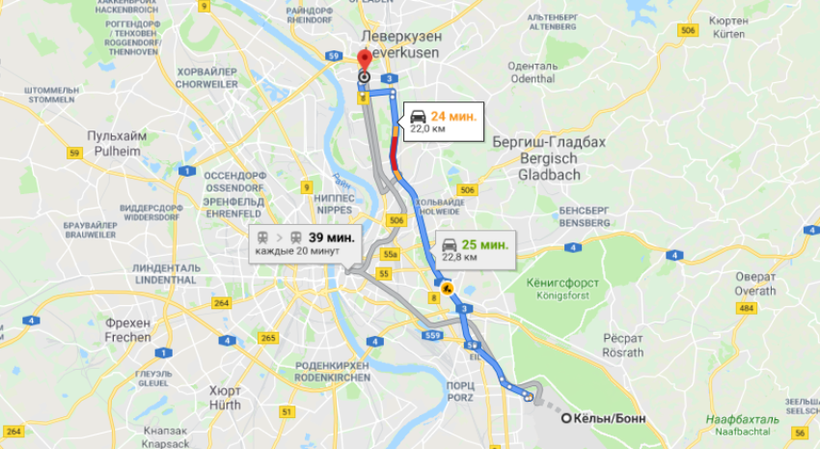 А поездка из аэропорта Кёльн/Бонн в центр города на автобусе обойдется в 2,20 евро (160 рублей).