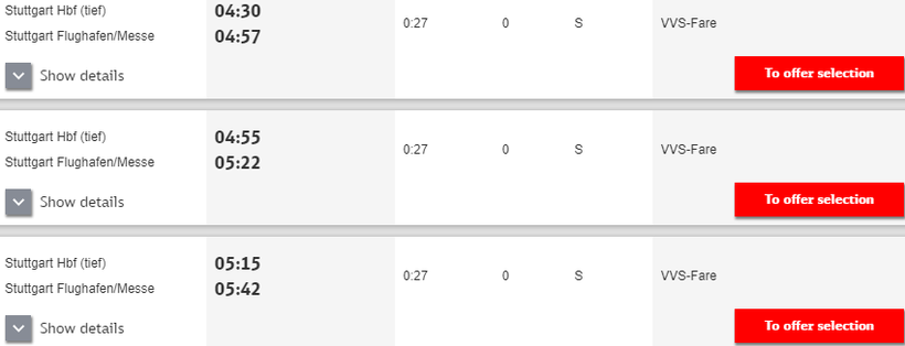 Добираться в аэропорт Штутгарта к месту отправления автобусов я советую от центрального ж/д вокзала города (на Arnulf-Klett-Platz 2) на поезде S2. Поезда ходят с 04:30 до 00:55 примерно каждые 10–20 минут, ехать в аэропорт полчаса.