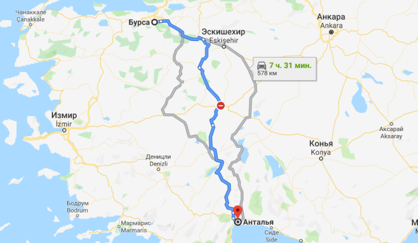 Бурсу и Анталью разделяют 550 км, которые можно на машине проехать за 7 часов. Кстати, при необходимости можете автомобиль в Бурсе арендовать, например, здесь.