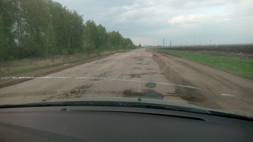 Так мы свернули в вышеуказанном месте, там же и залили полный бак на 2500 рублей. После чего началось веселье. Массаж всего тела на этой дороге гарантирован. Очень относительное покрытие. Но одновременно с этим дороги очень пустые, особенно после Сергача. Да и не так уж страшно то, насколько они разбиты. Держал 90-100, спокойно, но выше не рискнул бы, иногда проскальзывают глубокие ямы, которые нужно вовремя заметить. Я всё ждал, что большое количество транспорта и пробки появятся возле Ульяновска, но не тут-то было. Приличный поток был лишь на окружной этого замечательного города, но он легко компенсировался четырёх полосным движением.