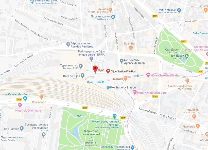Отправляются поезда от ж/д станции Dijon-Ville.