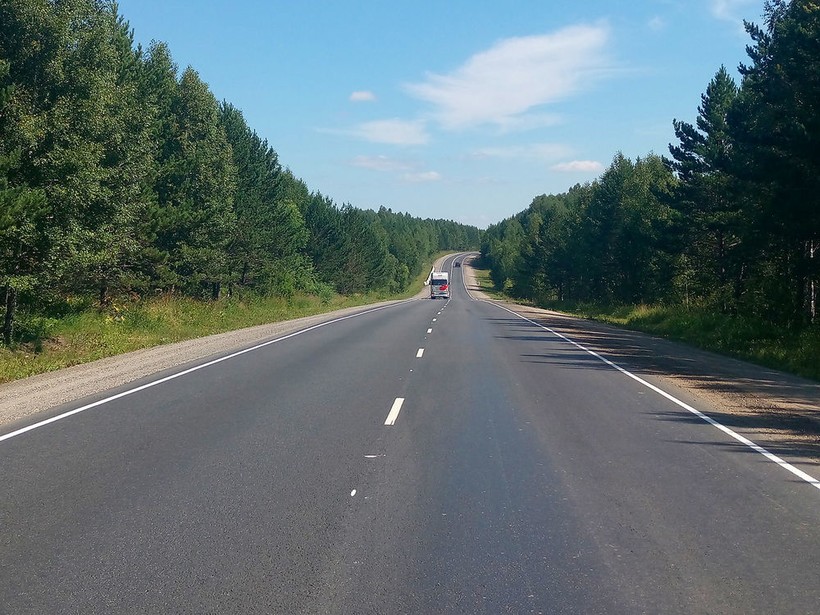 Теперь немного расскажу о качестве покрытия. До Югры я ехал по Р-255. Здесь две полосы, асфальт без повреждений, а разметку четко видно.