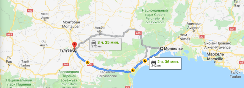 Расстояние от Монпелье до Тулузы