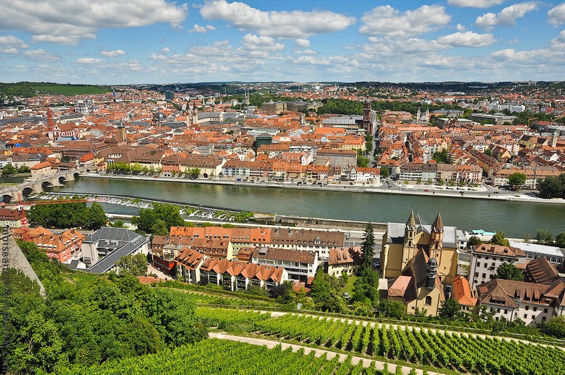 О Вюрцбурге я узнала, путешествуя по Баварии. Это небольшой город на Майне, ему больше тысячи лет, знаменит своими вином (говорят, лучшее в Германии) и дворцами. Особенно известно здание резиденции князей-архиепископов — чуть ли не самое красивое в Европе здание в стиле барокко. И вообще из Вюрцбурга начинается самый популярный туристический маршрут южной Германии — Романтическая дорога.