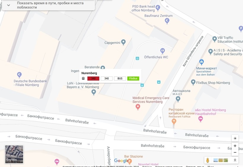 Поезда начинают движение с 5 утра и курсируют до 22 вечера (каждые 30 минут). Отправление от ж/д вокзала Nürnberg Hauptbahnhof на Bahnhofsplatz 9.