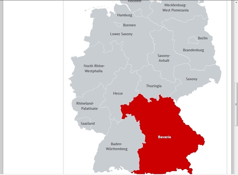 Можно нажать нужный регион на карте Германии, расположенной в нижней части страницы.