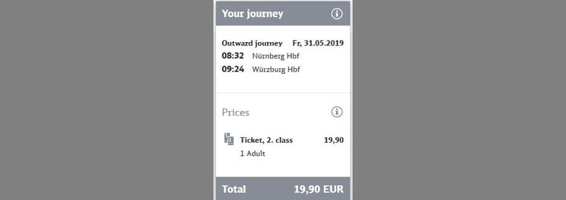 Билет в Вюрцбург стоит 4,99 € (365 рублей).