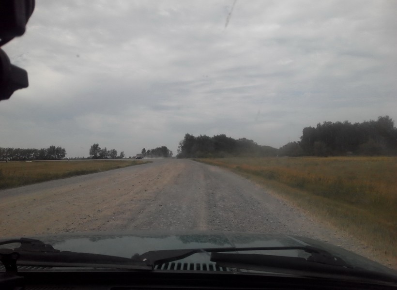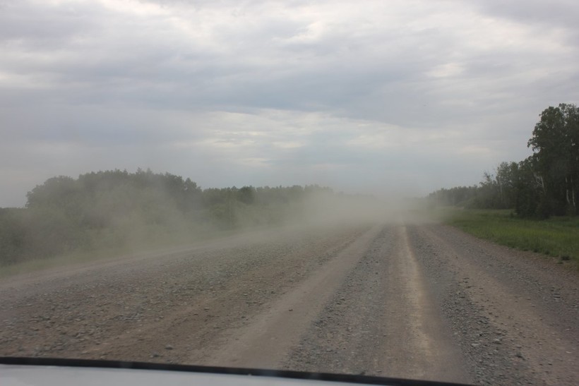 В поселке Татарск повернул направо. Сразу же пришлось сбрасывать скорость, ведь асфальт почти моментально закончился, и началась грунтовка. Дорога вроде ровная, укатанная, и без явных повреждений. Но последнюю неделю было очень жарко, поэтому было много пыли. Встречных машин очень мало, но когда они проезжали, то мой автомобиль накрывало большое пыльное облако, что создавало явный дискомфорт.