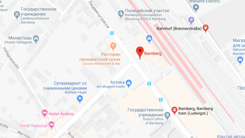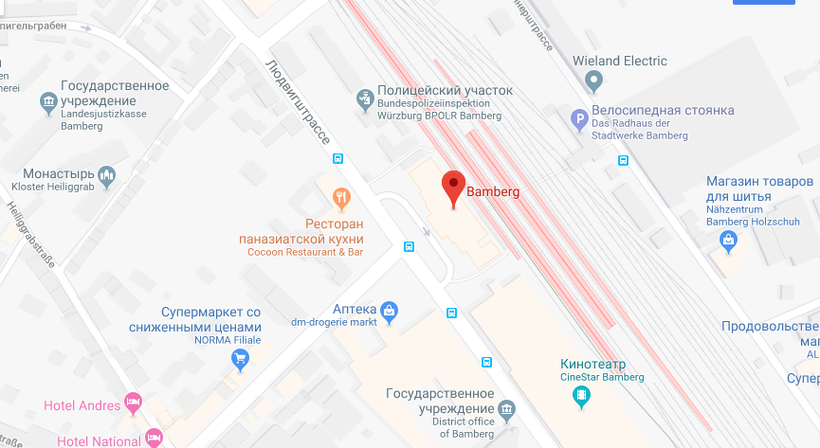 И обратите внимание, что выезжают автобусы не с привокзальной площади Бамберга, а с автобусной остановки на Ludwigstrasse 2.
