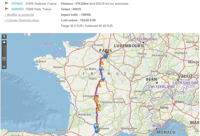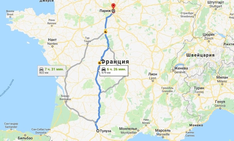 На машине из Тулузы в Париж можно добраться за 7–8 часов (в зависимости от количества и длительности остановок).