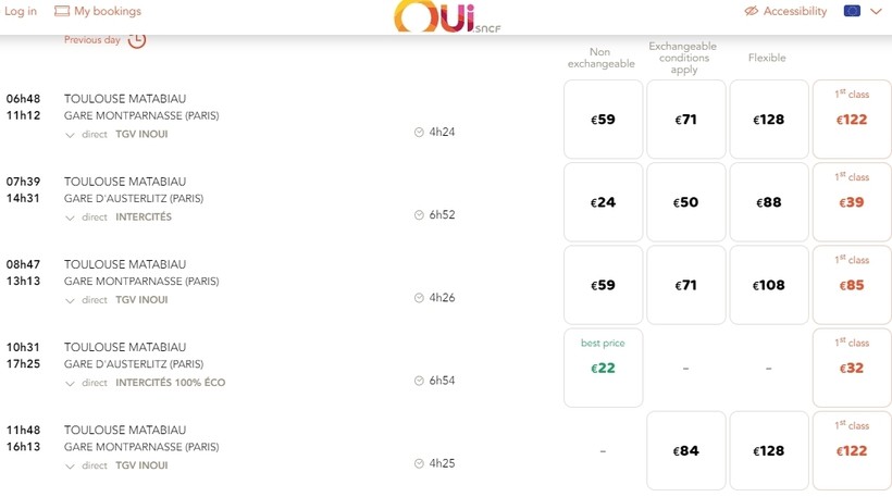 С интервалом в 1–2 часа из Тулузы в Париж курсируют поезда. Ежедневно доступно до 10 рейсов. График вы легко найдете на сайте французского железнодорожного оператора.