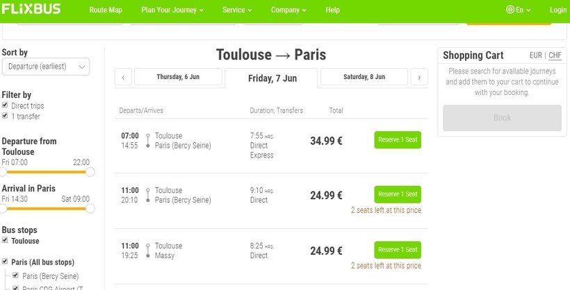 Добраться в Париж можно и на автобусе. По этому маршруту пассажирские перевозки выполняет компания Flixbus.