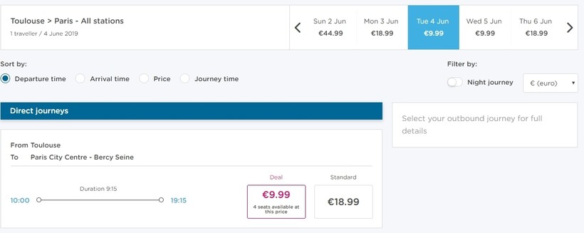 Ниже приведена информация о том, сколько часов вам потребуется, чтобы добраться от Тулузы до Парижа, а также приведена примерная стоимость проезда (средняя цена билета) на том или ином виде транспорта.