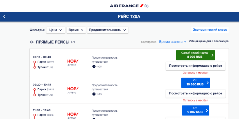 Авиабилет можно купить на официальных сайтах HOP! или Air France, а можно на каком-нибудь таком сервисе.
