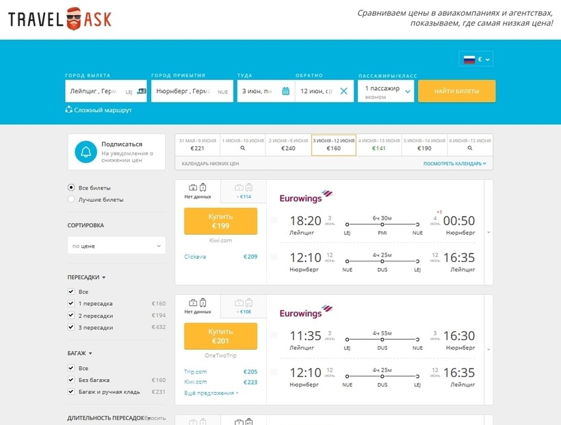 Кроме того, билеты можно купить на официальном сайте авиакомпании Eurowings.