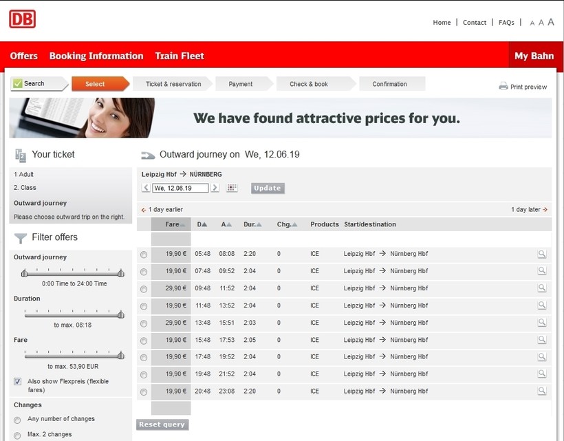 Удобнее всего покупать билет на поезд через сайт немецкого железнодорожного оператора — Deutsche Bahn.