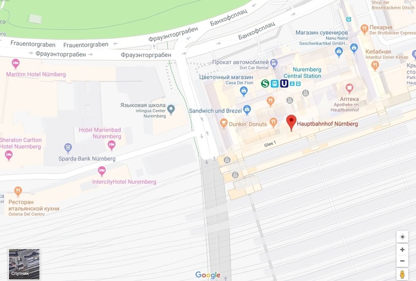 Прибывают на вокзал Hauptbahnhof Nürnberg на Bahnhofsplatz 9.