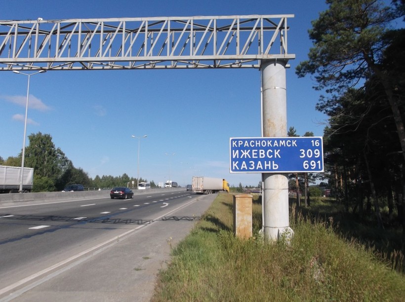 Первый отрезок пути проходил по трассе Р-242. Сразу после Перми дорога была относительно нормальной. Ямы встречались, но не часто, трафик ниже среднего. Порой встречал заправки и кафе. Но вот в Кировской области был тихий ужас. За несколько десятков километров до моста через Вятку начинается грунтовая дорога. Хорошо, что я ехал в сухую погоду. За мостом тоже плохая дорога, но уже гравий, что немного лучше. А вот в Татарстане трасса отличная, сразу начинается качественный асфальт и улучшается инфраструктура.