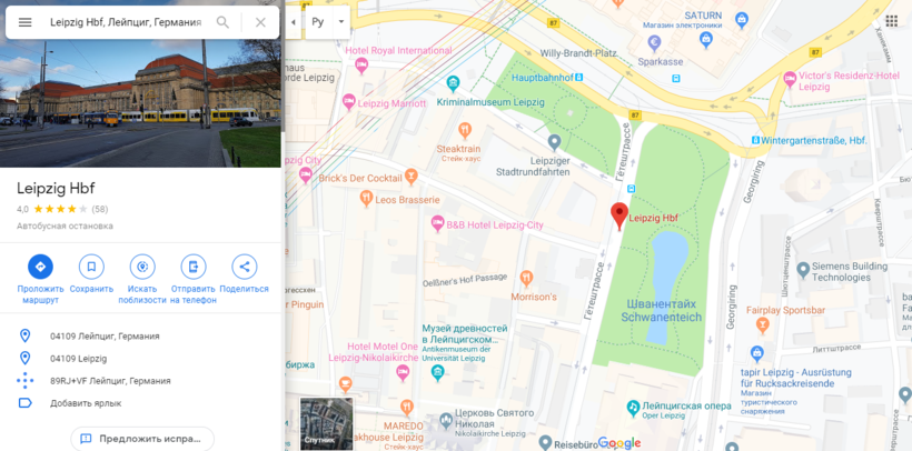 Поезда отправляются от ж/д вокзала Лейпцига, вот он: