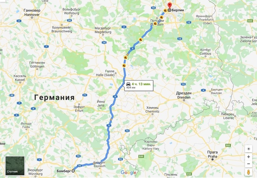 Расстояние между Берлином и Бамбергом — 400 км, для среднего автомобилиста это 4 часа пути.