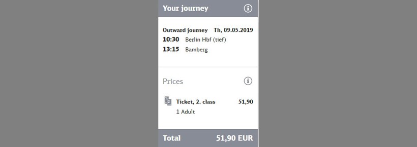 Билет на поезд в 10:30 утра стоит 51,90 €.