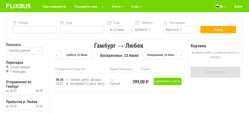 Билет на автобус Flixbus стоит от 399 рублей (5,4 евро), а за билет на общественный транспорт в Любеке (сюда входит и электричка также) нужно заплатить 3,20 евро (235 рублей) — за разовый билетик или 9,60 (705 рублей) — за дневной проездной.