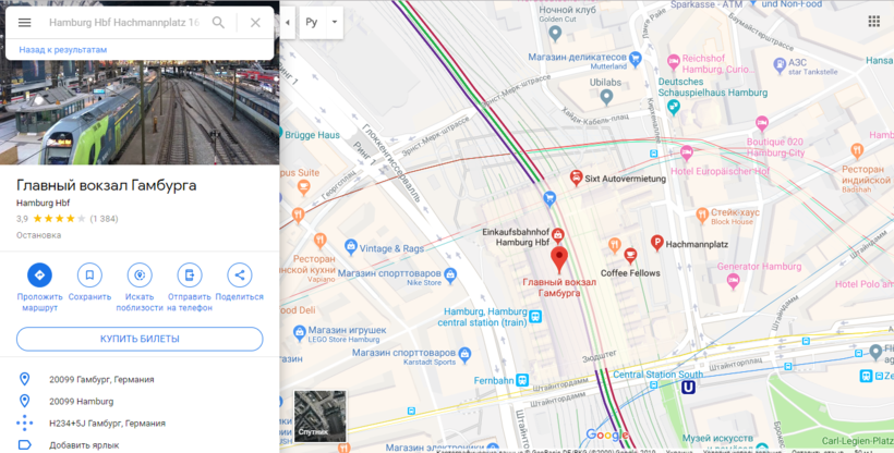 Садиться на поезд нужно на вокзале Hamburg Hauptbahnhof.
