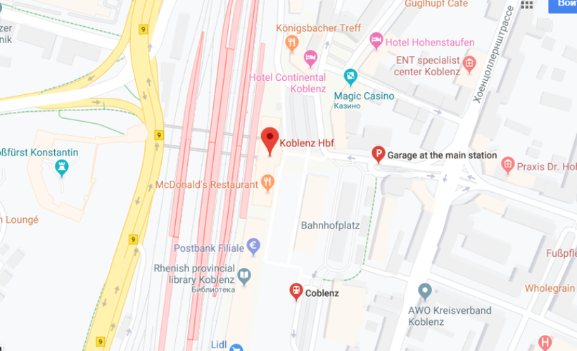 Ежедневно от главного ж/д вокзала Кобленца, расположенного на Bahnhofsplatz 2, прямо в Дюссельдорф отправляются поезда с 05:07 до 20:17 по 2–3 рейса в час.