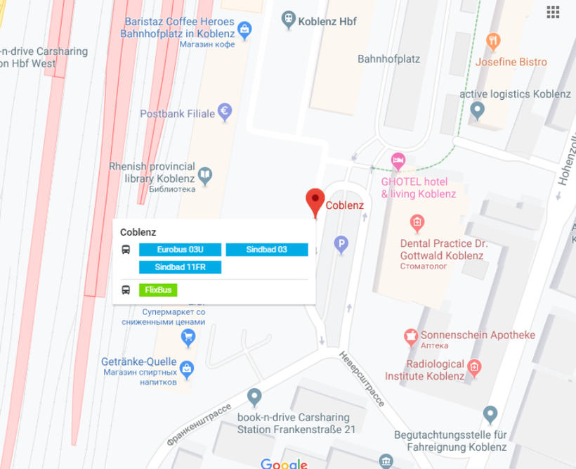 Поскольку отправляются автобусы из Кобленца от обычной остановки, где приобрести билеты нельзя, сделать это нужно заранее через сайт Flixbus.