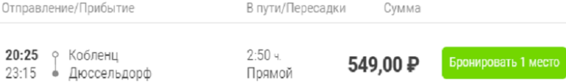Билет из Кобленца в Дюссельдорф обойдется всего в 550 рублей или 7,7 евро. Это почти в три раза дешевле, чем поездка на поезде.