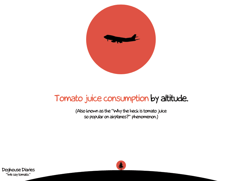 Раньше, бывало, я сам неизменно пил на борту самолета томатный сок (а дома при этом – нет). Когда стал летать чаще – заказывать стал реже, уже только из-за ностальгии по прошлому. Мне кажется, люди заказывают томатный сок по нескольким причинам: