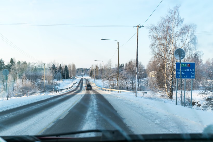 Финские магистрали постоянно чистят. Снегоуборочная машина идет с такой же скоростью, как и основной поток, не мешая движению. Есть одна интересная деталь — степень чистоты дороги зависит от ее номера. Участки с трехзначными номерами вычищают до асфальта. С двухзначными - просто хорошо.