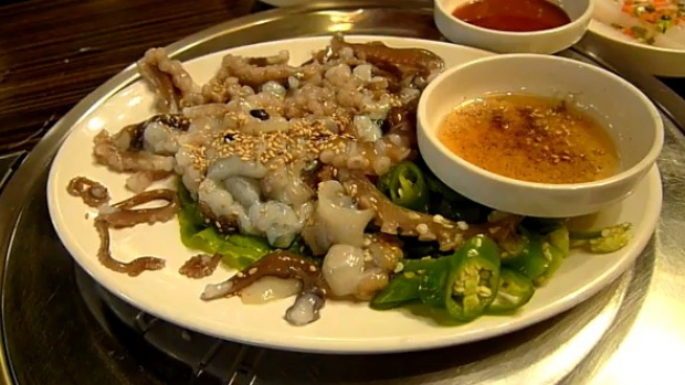 А в Корее можно попробовать живого осьминожка (целого или нарубленного на куски). Правда, с этим блюдом надо соблюдать осторожность – эта еда может в буквальном смысле "встать поперек горла".