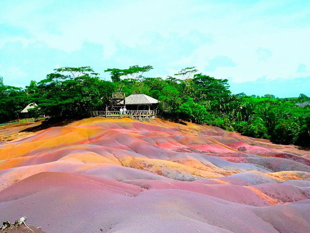 На Маврикии, в местечке под названием Шамарель, можно полюбоваться так называемыми "семицветными песками"* – удивительное зрелище!