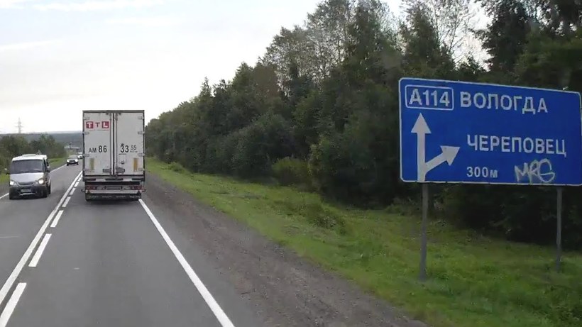 Далее маршрут проходит по трассе А-114. Это тоже хорошая дорога, здесь ехать очень приятно и легко. Отличное покрытие, особенно в Вологодской области, транспорта не много, а заправки мелькали постоянно. Вот только в Тихвинском районе есть несколько плохих участков, где разметки почти нет. До Череповца доехал без проблем, легко ехать по такой трассе.