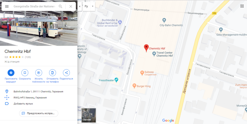 Примерно через 4 часа вы доберетесь в Хемниц на центральный ж/д вокзал.