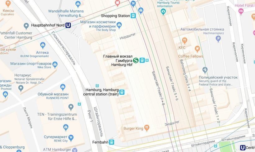 С учетом пересадки (на нее потребуется 17–20 минут, в зависимости от рейса), в пути придется провести от 2 до 7 часов. На мой взгляд, это неудобно. Все поезда прибывают на вокзал Гамбурга, расположенный по адресу Hachmannplatz 16.