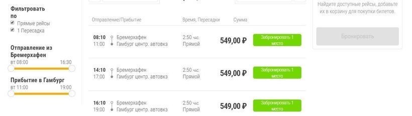 Определиться с расписанием можно на сайте компании Flixbus. Вот скриншот на произвольную дату: