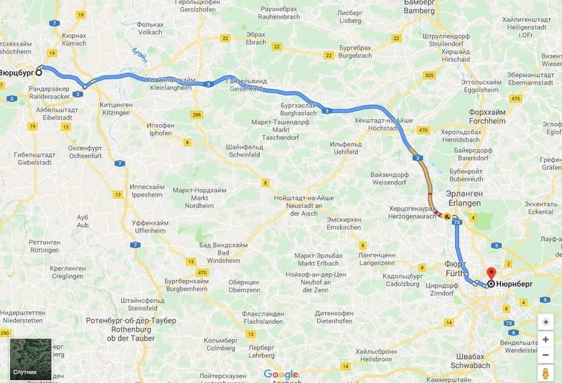 Расстояние от Вюрцбурга до Нюрнберга