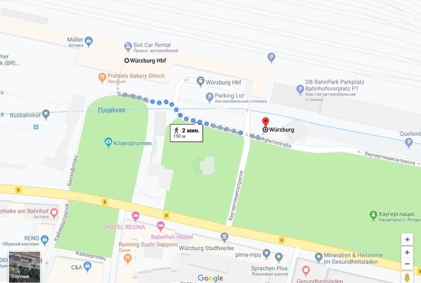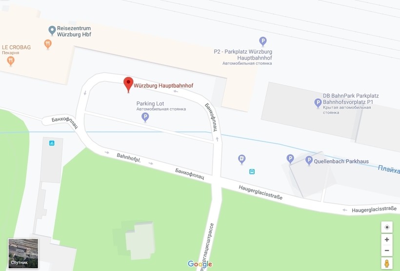 Поезда отправляются от вокзала Würzburg Hauptbahnhof, расположенного на Bahnhofplatz 4.