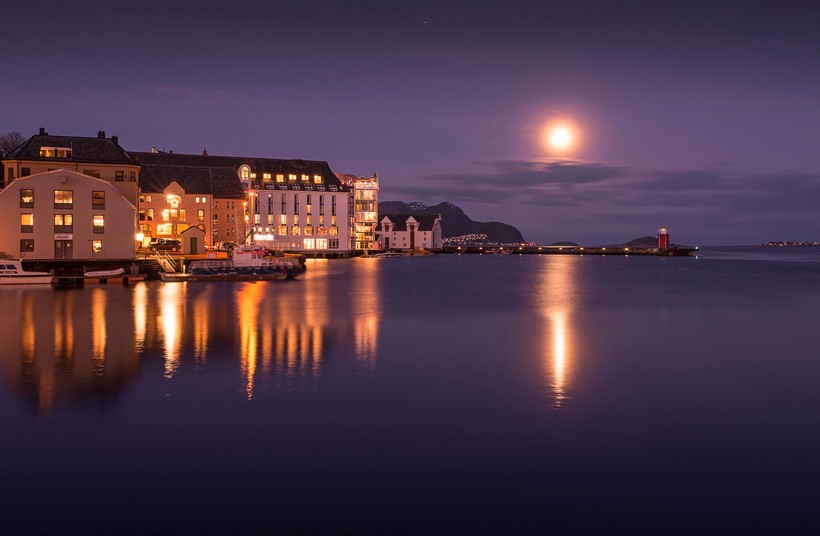 В Олесунне ярко выраженный морской климат, но благодаря близости Гольфстрима зимой и весной здесь не очень холодно. Я была в Норвегии неделю, и температура воздуха в это время не опускалась ниже +4 градусов днем. Ночью было холоднее: –2. Море из-за Гольфстрима не замерзает. Температура воды около +4.