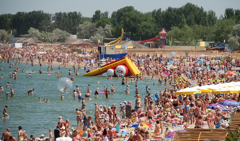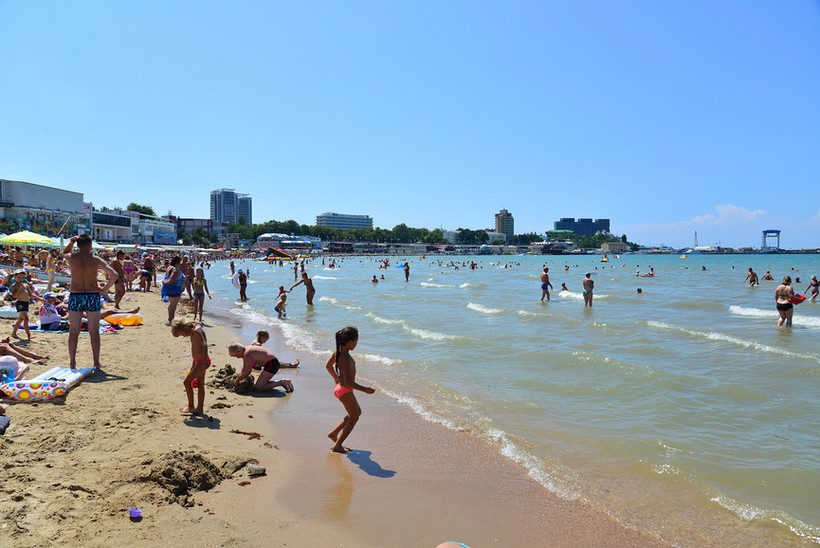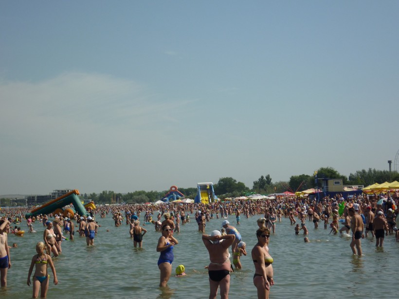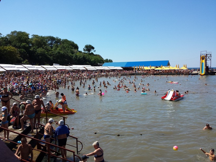 Море первые две недели было теплым. Чистое? Не, не видели. Вот цветущее, вонючее, напоминающее гороховый суп-пюре, да. Помимо толп отдыхающих, на пляжах множество кафе, а значит мусорных баков, запах соответствующий. Полежать спокойно – фантастика! Каждые 5 минут нам предлагали отведать кукурузы или прокатиться на скутере.
