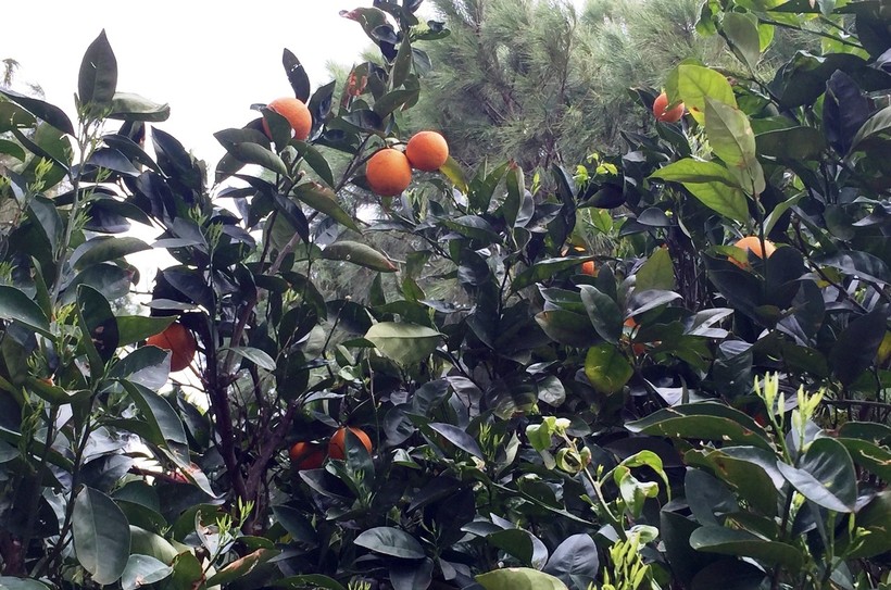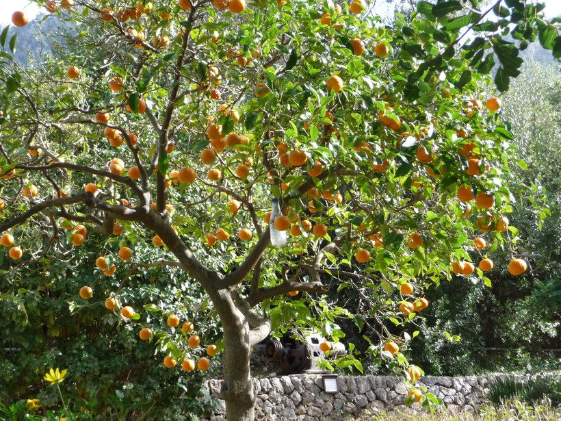 Лимоны уже висят на деревьях. Я сорвала один во время экскурсии. Он был неспелым и чересчур кислым, но пах очень ароматно. К апельсиновым деревьям экскурсантов не подпустили, но меня поразило, что на них одновременно находятся цветы и плоды.