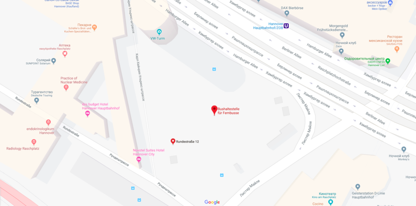 Отправляются все автобусы от автовокзала в Ганновере по адресу Rundestraße 12.