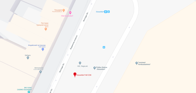 В день курсирует 5 рейсов. Все автобусы прибывают на автовокзал в Дюссельдорфе, расположенный по адресу Worringer Straße 140.