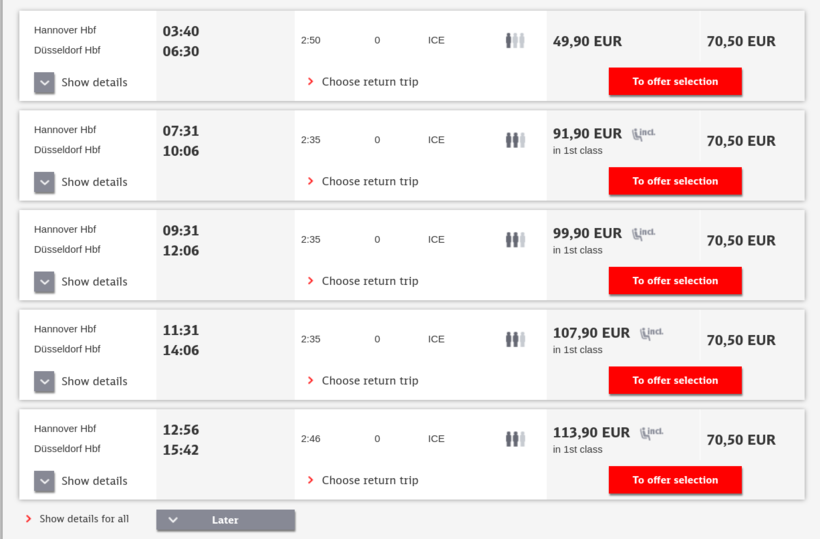 Также можно воспользоваться и железнодорожным транспортом. Я уже рассказывал, где находится железнодорожный вокзал в Ганновере, поэтому сразу перейду к описанию. Вот скриншот с сайта немецкого железнодорожного оператора: