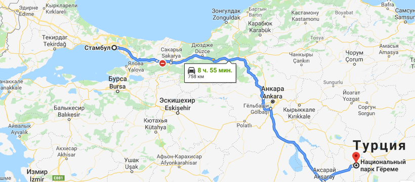 Стамбул — Национальный парк Гёреме — маршрут на карте